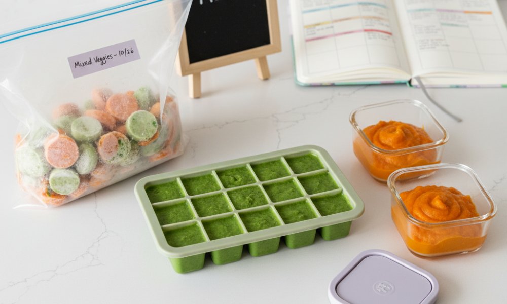 - For the Freezer: Use the "ice cube tray hack" for the rest. Spoon purees into silicone ice cube trays, freeze until solid, and then transfer the cubes to labeled freezer bags. This creates perfect 1-ounce portions that you can thaw and mix-and-match throughout the week. For finger foods, you can freeze small portions on a baking sheet before transferring them to a bag.